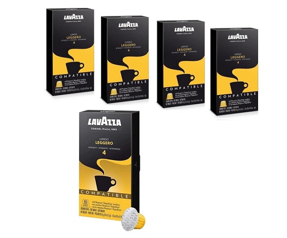 Cafe Lavazza En Capsulas LUNGO Intensidad 4 Compatible Nespresso. La dulzura de los granos de café Arábica brasileña y las delicadas notas aromáticas de los cafés Arábica se combinan para formar una mezcla de prestigio con un sabor delicado y aromático y extraordinarias notas frutales y florales.Cápsulas compatibles con máquinas Nespresso® Original para uso doméstico.Origen: Italia. INCLUYE: 5 cajas de 10 cápsulas c/una.