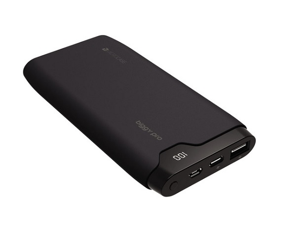 Power Bank Biggy Pro 10000mAh. Carga 2 dispositivos en simultaneo. 2 puertos de carga. 10.000mAh ion litio. Entrada Micro USB: 5V/2.1A. Entrada Micro USB-C: 5V/2.1A. Salida Micro USB-C: 5V/2.1A. Salida Micro USB: 5V/2.1A. Led numérico indicador de carga. Tiempo de carga: 2 a 5 horas. Medidas: 137-70-16mm.