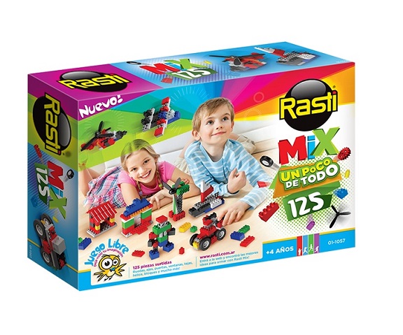 El nuevo Rasti MIX 125, cuenta con la mas amplia variedad de piezas Rasti: ruedas, ejes, puertas, ventanas, tejas, hélices, acoples, bloques y mucho más!Contiene 125 piezas de colores varios. Para + de 4 años.