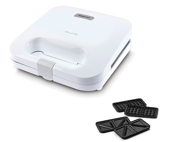 Set de Placas desmontables e intercambiables para hacer wafles o tostados. Placas con recubrimiento antiadherente, para una fácil limpieza. Cierre hermético de seguridad. Indicador Lumínico. Potencia: 750 Watts. Práctica y Segura. Incluye: Sandwichera / Placas para hacer tostados / Placas para hacer wafles.