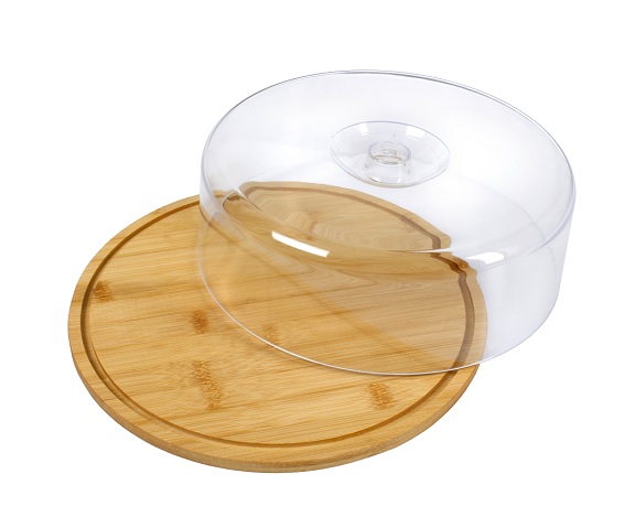 Tortera redonda de madera Bambu de 28 cms de diametro totales. Diametro interno ( anterior al cavado donde encaja la tapa de acrilico ) 26 cms. Base redonda es de madera Bambu ya tratada. Tapa es de Acrilico de 25 cms de diametro. Ideal para guardar tortas , panes, masas , quesos , picadas , etc. Ideal para regalar o regalarse