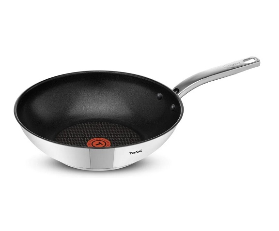 Wokpan 28 cm Intuition, ¡disfruta de la elegancia! Simple elegancia para la cocina día a día. Esta línea está fabricada en acero inoxidable, con antiadherente en el interior para facilitar la cocción y limpieza. Compatible con todo tipo de Cocinas, incluso las de inducción. Tamaño aproximado 28 cm. Color: Plata. Thermospot: Se vuelve de color rojo cuando el producto alcanza la tempratura optima de 180 grados para comenzar a cocinar. Antiadherente TITANIUM, reforzado con particulas de titanium que permite alta durabilidad. Capa de acabado extra gruesa. Facil de limpiar por dentro y por fuera. No se mancha. Facilidad para verter gracias al borde vertedor. Acero inoxidable: Material de alto contenido en cromo, cuenta con una excelente resistencia a la corrosión. Apto lavavajillas.