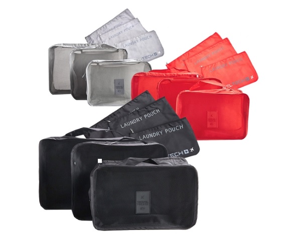 Modelo: 10904. Organiza tu ropa en estuches súper prácticos. El set esta compuesto por 6 piezas. 1 organizador grande con manija y tela de red con doble cierre. 1 organizador mediano con manija y tela de red con doble cierre. 1 organizador chico con manija y tela de red con doble cierre. 1 bolsa grande con cierre. 1 bolsa mediana con cierre. 1 bolsa chica con cierre. Medidas: organizador grande: 40 X 30 X 13 cm / organizador mediano: 30 X 28 x 13 cm / organizador chico: 30 X21 X 13 cm / bolsa grande: 35 X 27 cm / bolsa mediana: 27 X 25 cm / bolsa chica: 26 X 16 cm. Material: Nylon impermeable y lavable. Color: Rojo